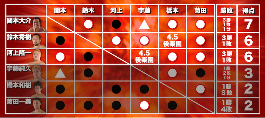<鈴木・関本の準決勝進出が決定>Bブロック最終結果 2018.04.05トピックス HOME ブログ トピックス <鈴木・関本の準決勝進出が決定>Bブロック最終結果 Tweet Share Hatena RSS 全日程が終了し、鈴木秀樹選手の1位通過、関本大介選手の2位通過が決定いたしました。 ※4/5最終結果 Tweet Share Hatena RSS トピックス チケットは公式通販サイトで販売中! 公式通販サイト「BJ-SHOP」 3.31 大阪・エディオンアリーナ大阪・第2競技場大会 公式戦試合結果&コメント <大地・中之上の準決勝進出決定>Aブロック 最終結果 関連記事一覧 <大地・中之上の準決勝進出決定>Aブロック 最終結果 2018.04.05トピックス プレイバック 一騎当千-strong climb- 2014... 2018.02.16トピックス 公式戦全日程が決定 2018.02.06トピックス 4.15 北海道・ススキノ・マルスジム大会 優勝決定戦試合結... 2018.04.17トピックス