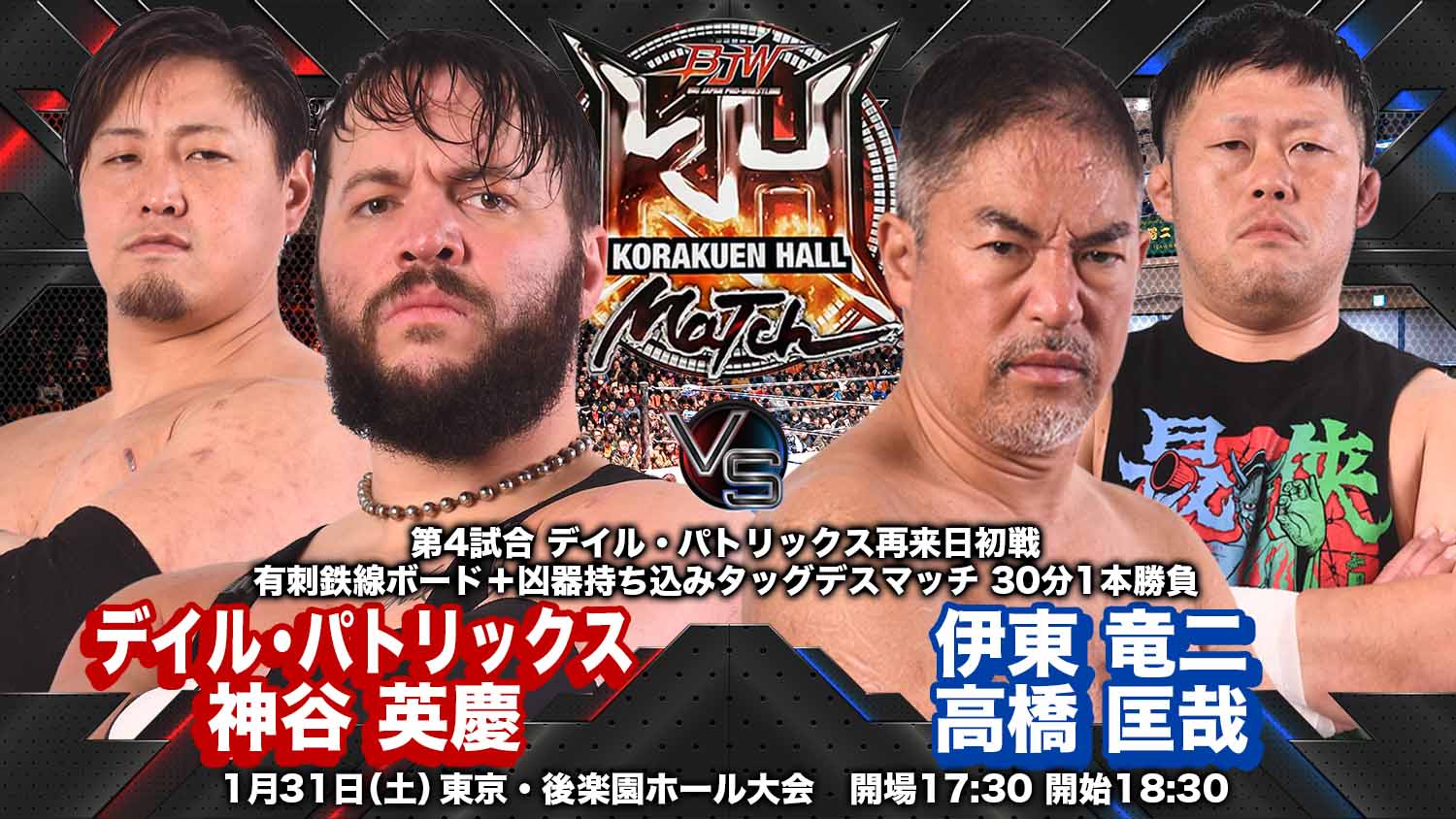 【BJW Free Match!!】2025.5.5横浜武道館 アキラ vs デイル・パトリックス【BJW認定デスマッチヘビー級選手権/鋭利物裸足デスマッチ】