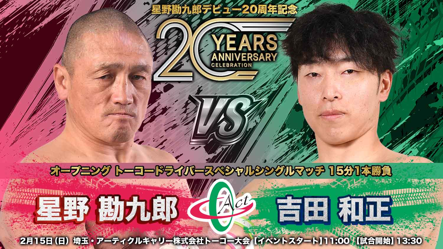 2/15(日)「星野勘九郎デビュー20周年記念」埼玉・アーティクルキャリー株式会社トーコー大会