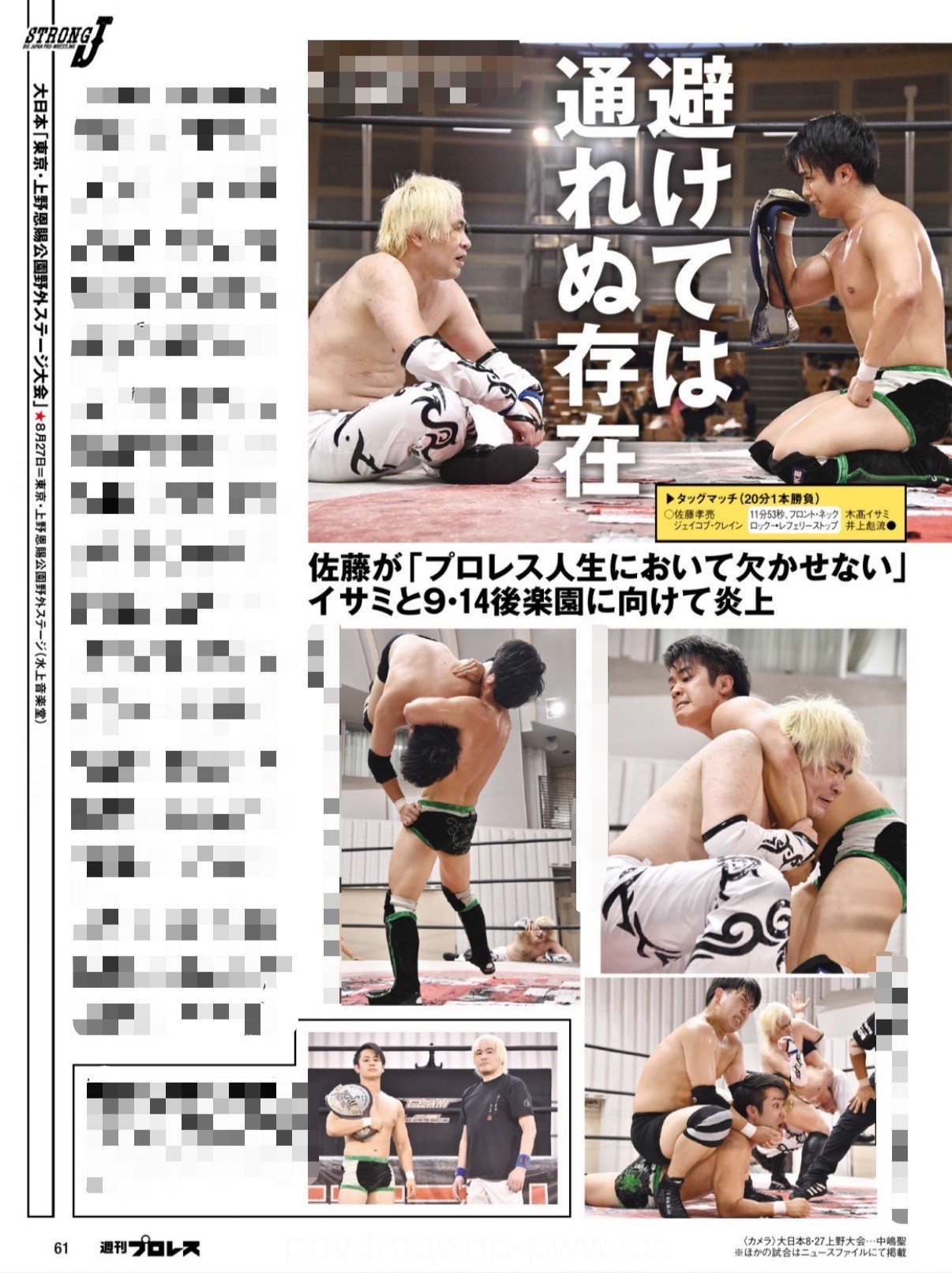 週刊プロレス今週号では、佐藤孝亮vs木髙イサミが9・14後楽園に向けて炎上した8・27上野大会をリポート! また、夏の終わりの怪談特集では橋本大地が登場!