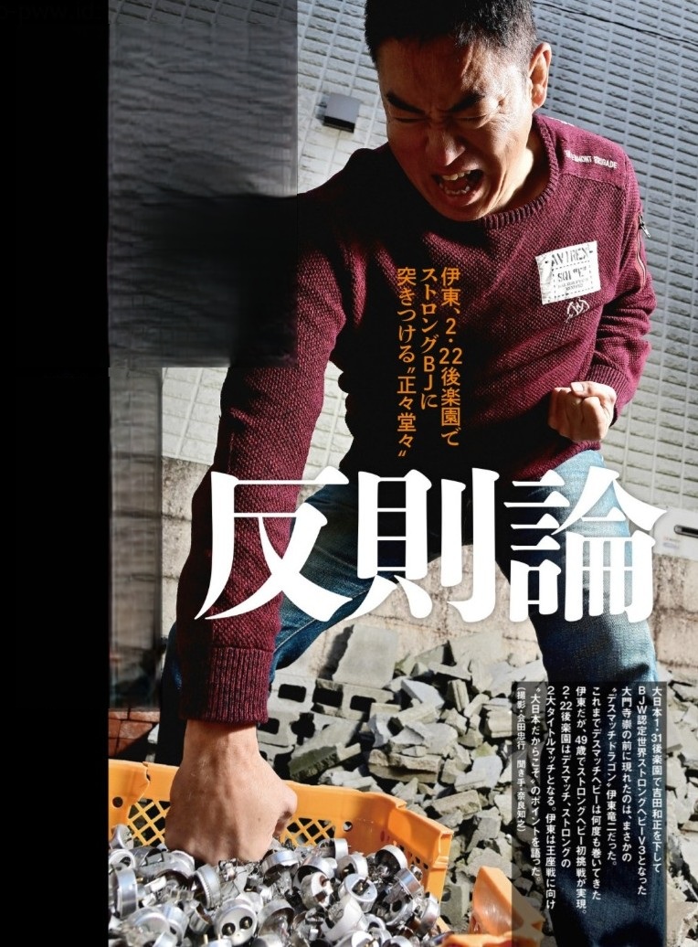 週刊プロレス今週号では、2・22後楽園でBJW認定世界ストロングヘビー初挑戦の“デスマッチドラゴン”伊東竜二インタビュー! 大日本ならではの話を語っています。