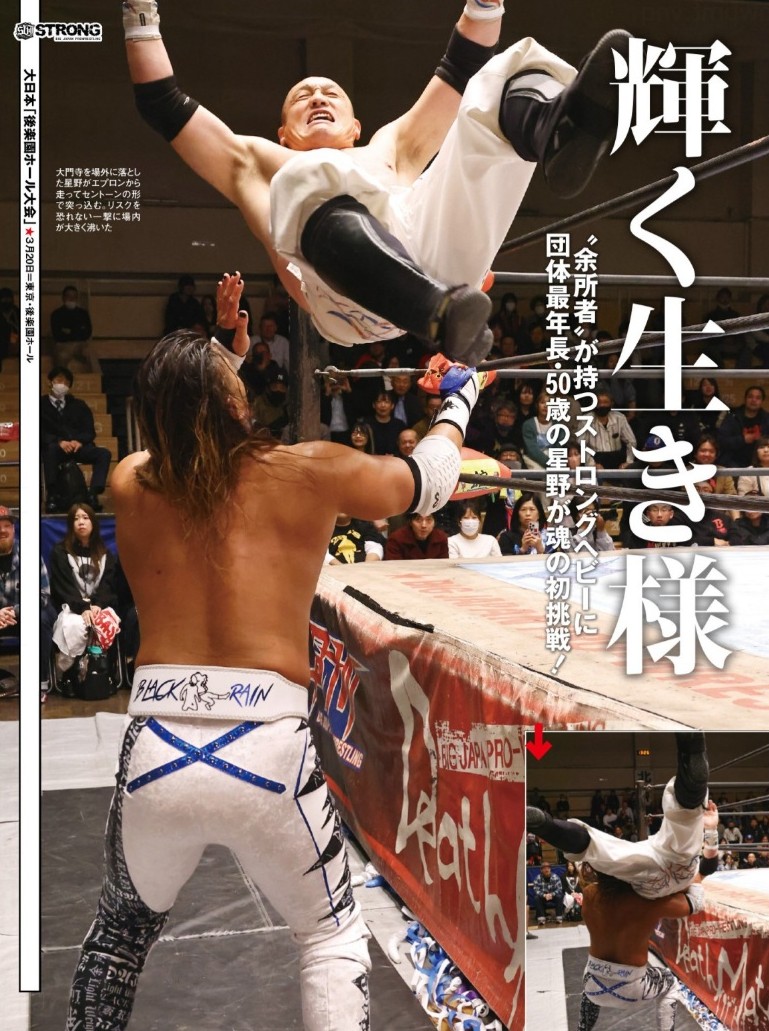 週刊プロレス今週号では、大門寺崇vs星野勘九郎ストロングヘビー戦、ストロングJvs栃木プロレスが炎上した3・20後楽園をリポート!