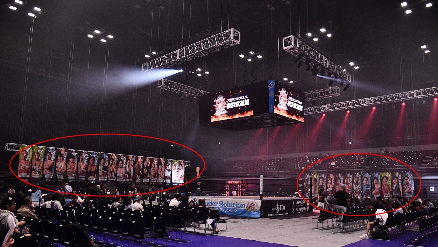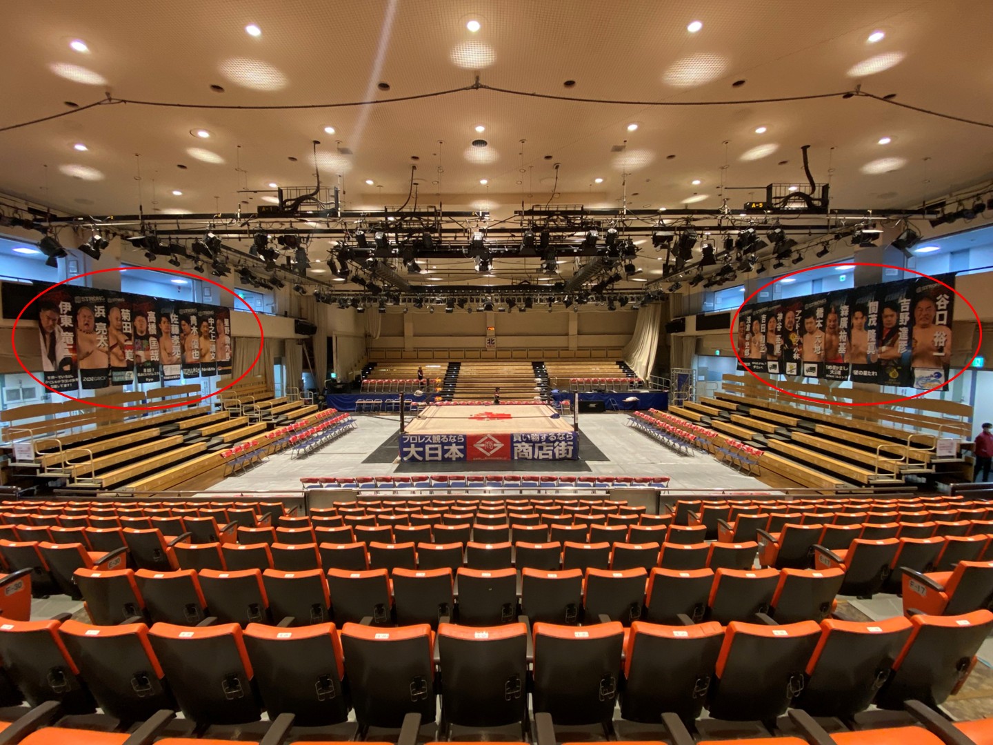 会場などで掲載される懸垂幕は各選手一枠限りのプレミアム