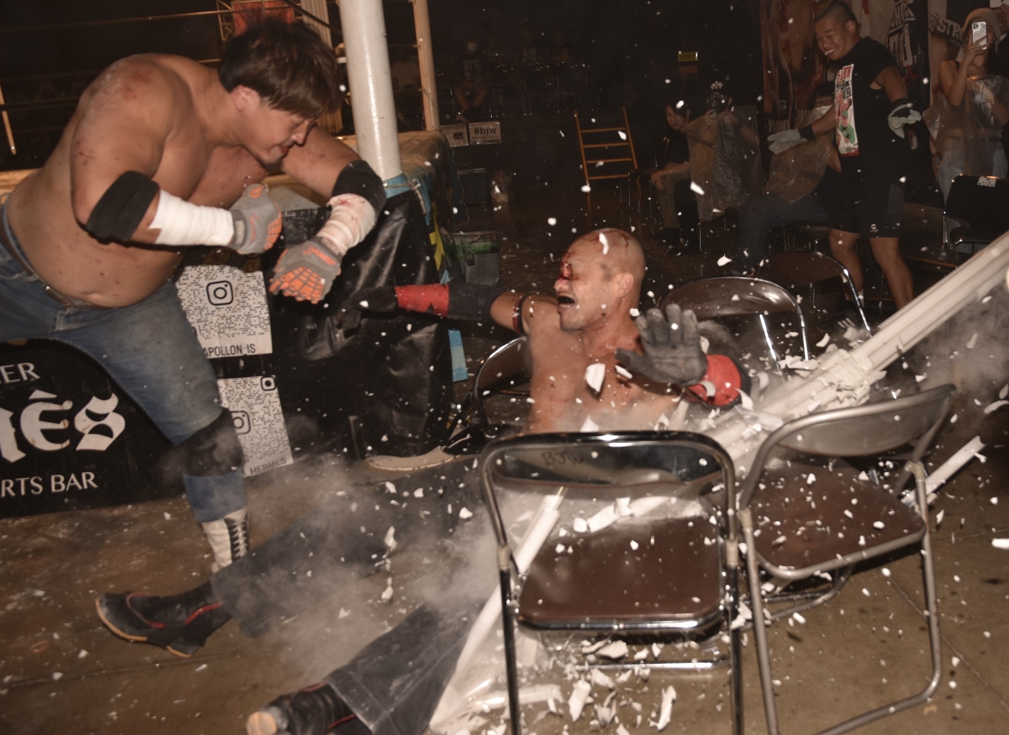 9月11日(水)と12日(木)両日ともご来場のお客様に菊田一美選手の新木場デスマッチシングル2連戦のイメージビジュアルを使用した特製L版ブロマイドをプレゼントいたします。