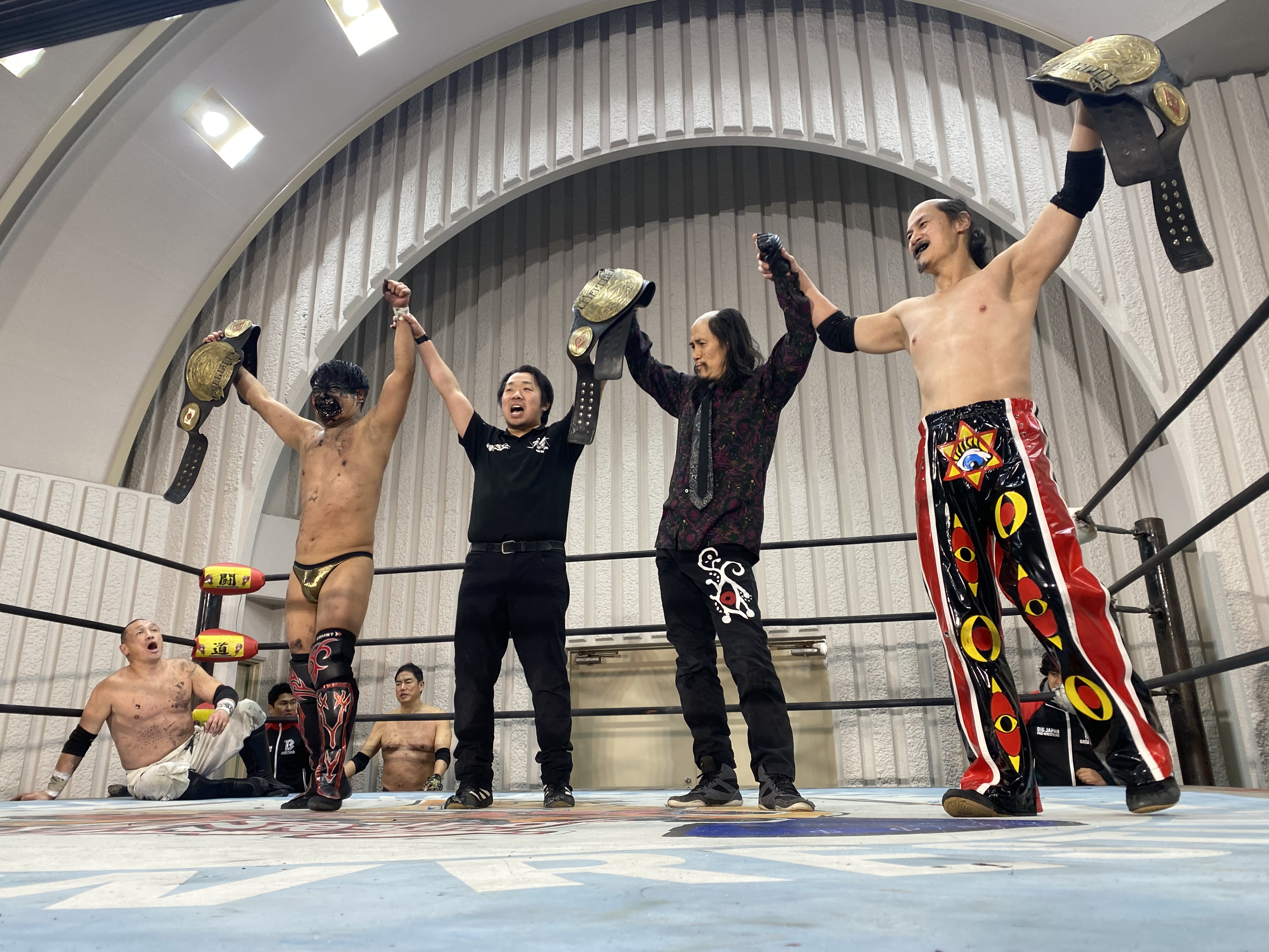 ※ バラモンシュウ、バラモンケイ、吉野達彦組が第50代新王者組となる