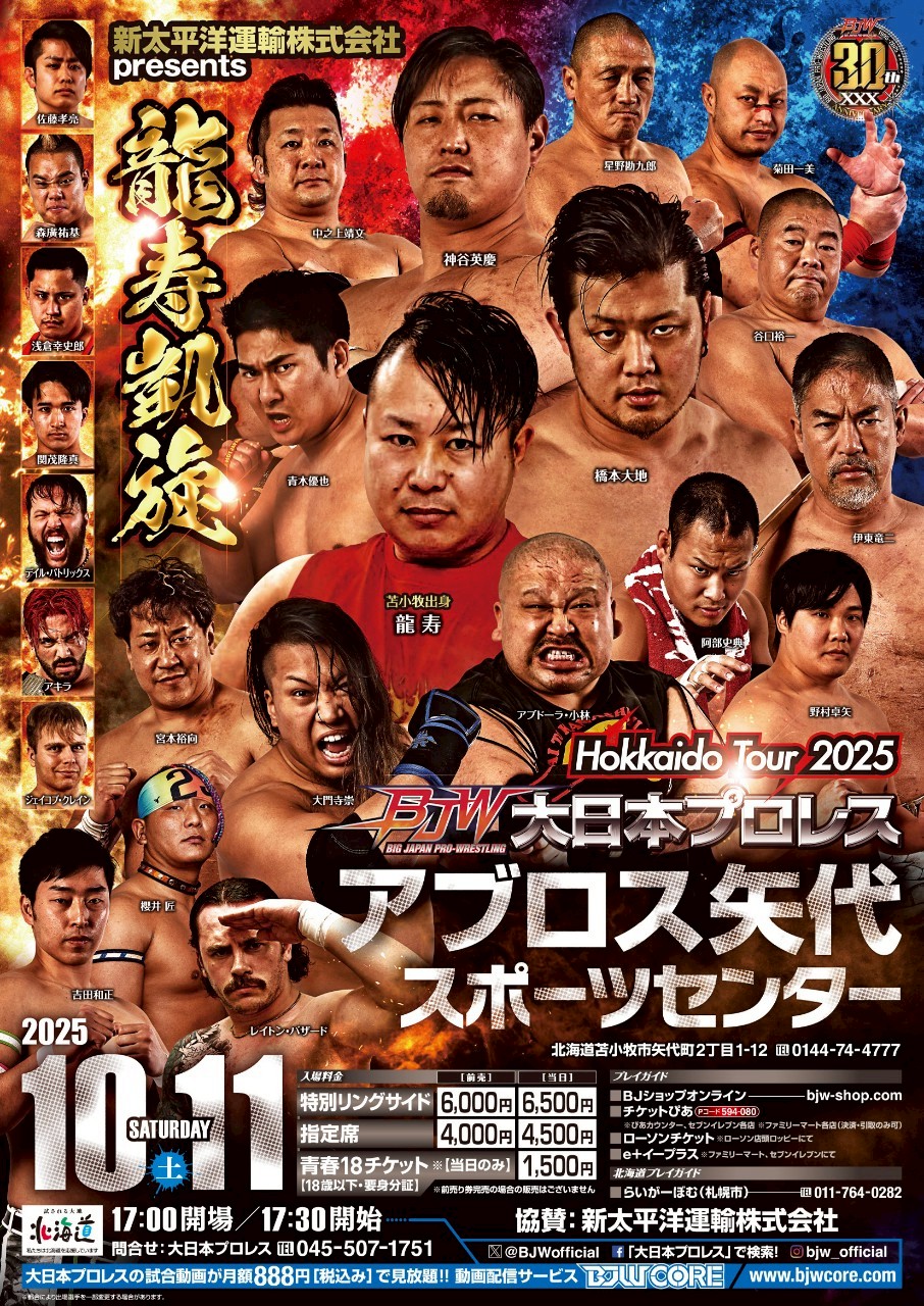 新太平洋運輸株式会社 presents 「龍寿凱旋!」 北海道・アブロス矢代スポーツセンター大会※観戦マナーはこちらをご確認ください。 |