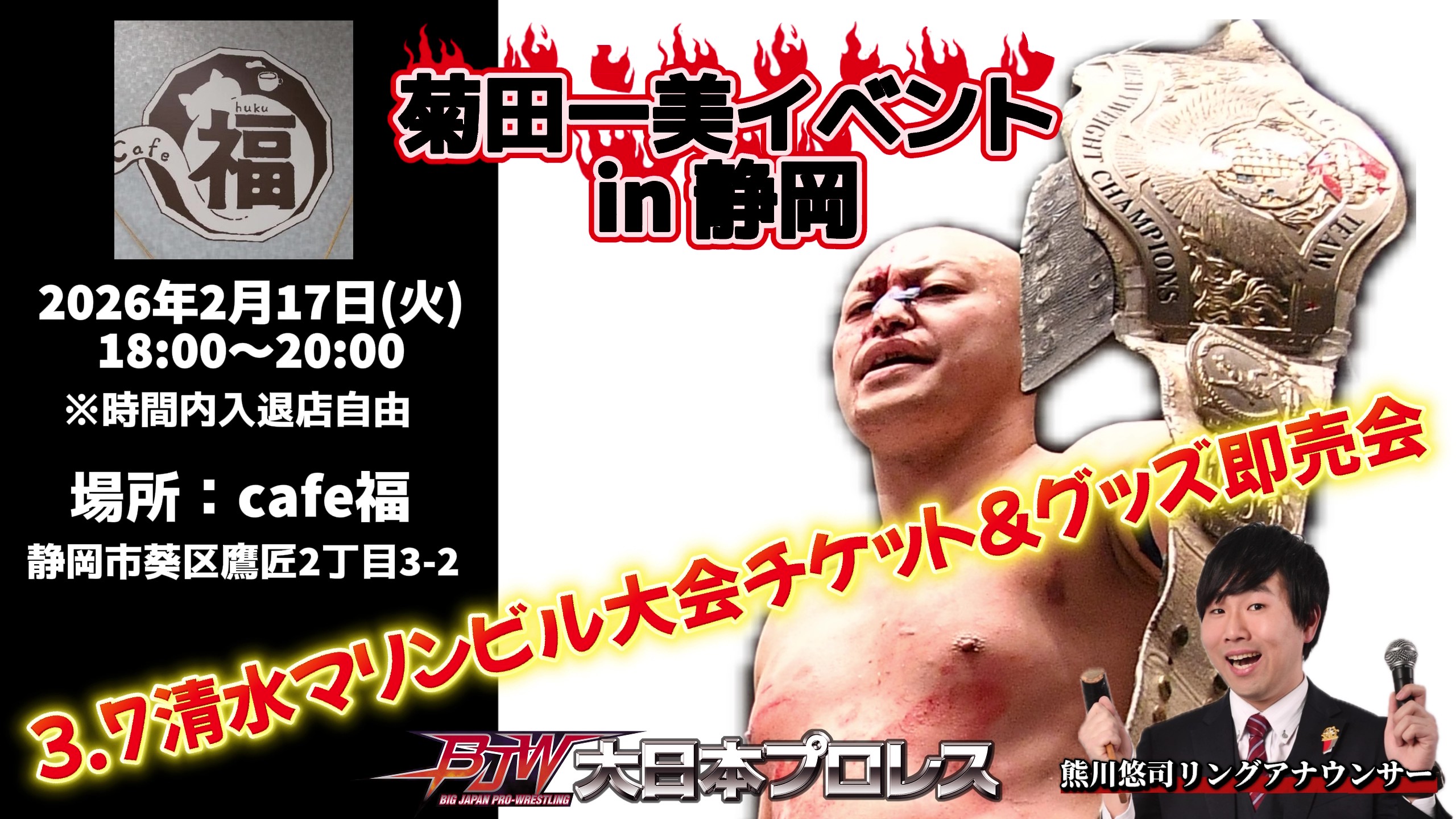 18:00~静岡・cafe福「3.7清水マリンビル大会チケット&グッズ即売会」