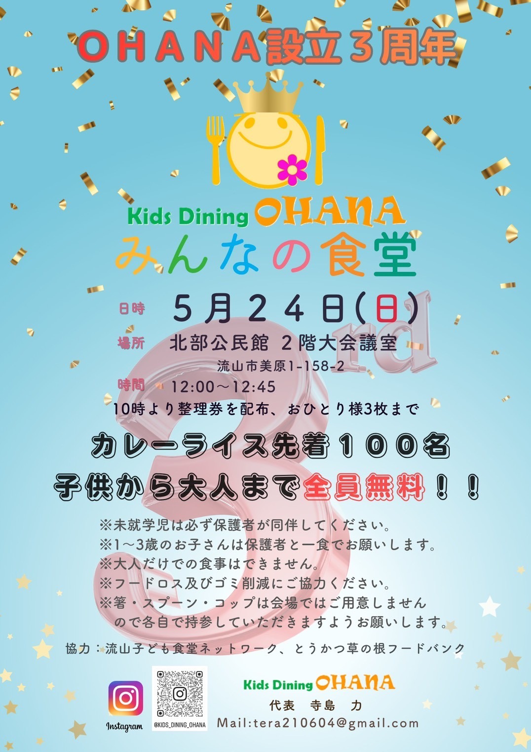 | 【主催・お問い合わせ】 | Kids Dining OHANA代表 寺島 力 tera210604@gmail.com |