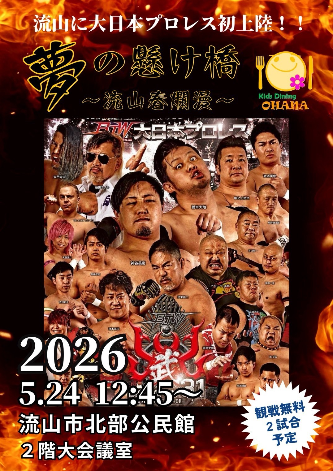 「OHANA 設立3周年 ~流山春爛漫~」 千葉・流山市北部公民館マットプロレス※観戦マナーはこちらをご確認ください。 |